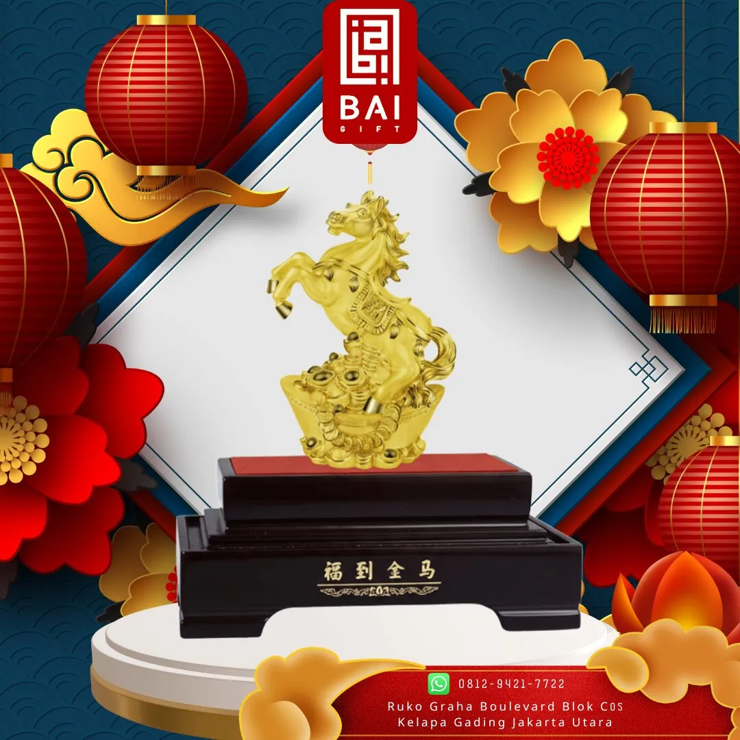 Pesan Produk "BAI GIFT HAMPERS & SOUVENIR IMLEK 2026 PAJANGAN PATUNG SHIO KUDA YUANBAO TUMPUKAN EMAS & UANG KOIN PASTI HOKI"